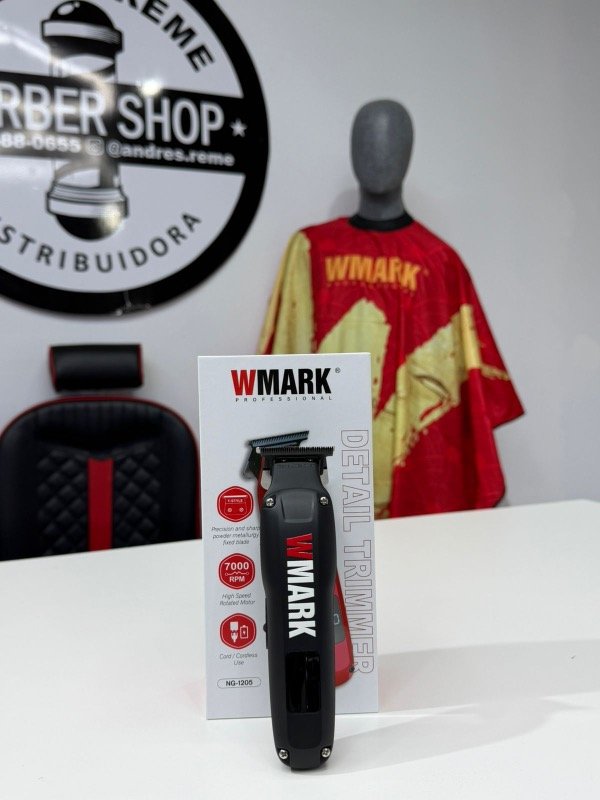 Esta máquina es una WMARK NG-1205 Detail Trimmer, una herramienta profesional inalámbrica diseñada para detalles y acabados precisos en barbería.